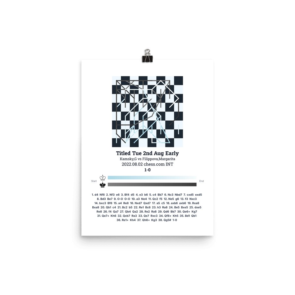 Museum-quality poster on thick, durable matte paper. A sharp, clean look for any chess visualisation.