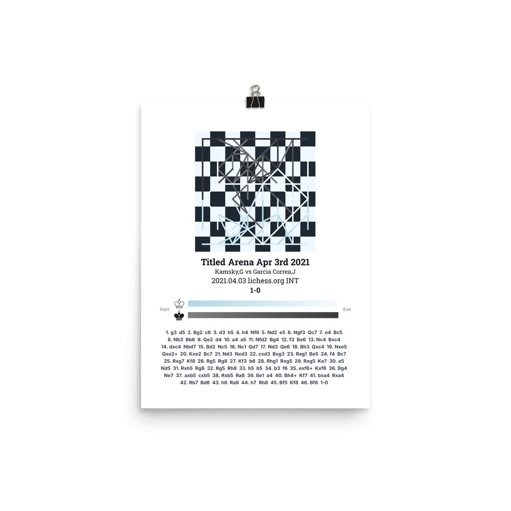 Museum-quality poster on thick, durable matte paper. A sharp, clean look for any chess visualisation.