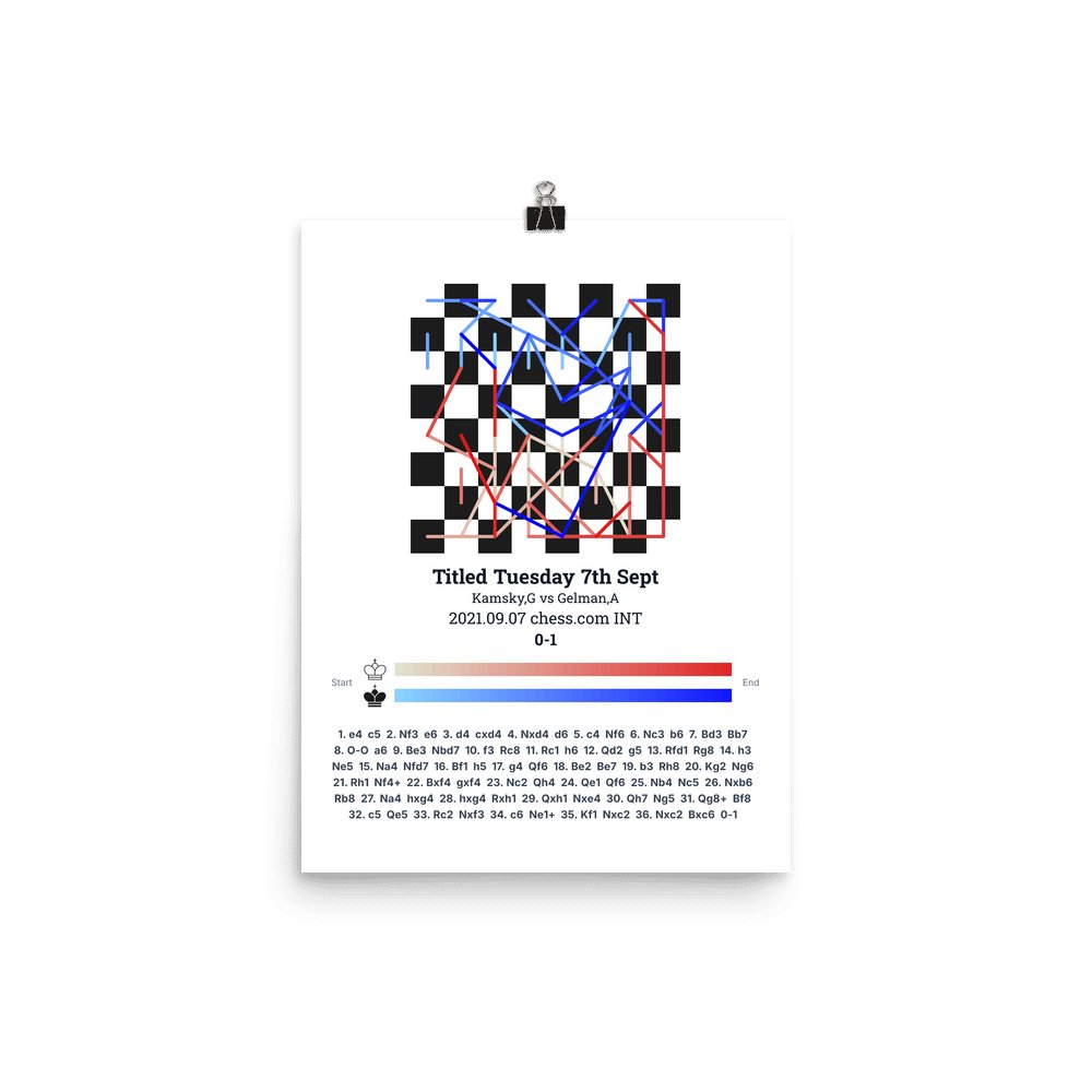 Museum-quality poster on thick, durable matte paper. A sharp, clean look for any chess visualisation.