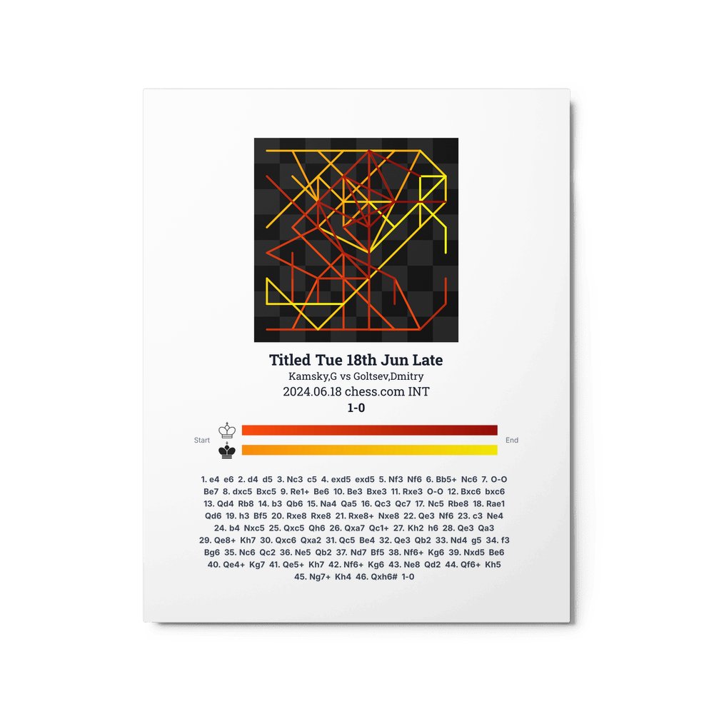 Museum-quality poster on thick, durable matte paper. A sharp, clean look for any chess visualisation.