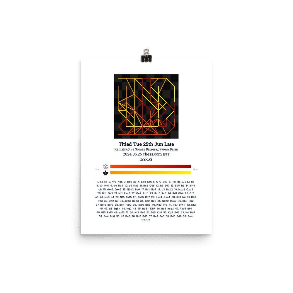 Museum-quality poster on thick, durable matte paper. A sharp, clean look for any chess visualisation.
