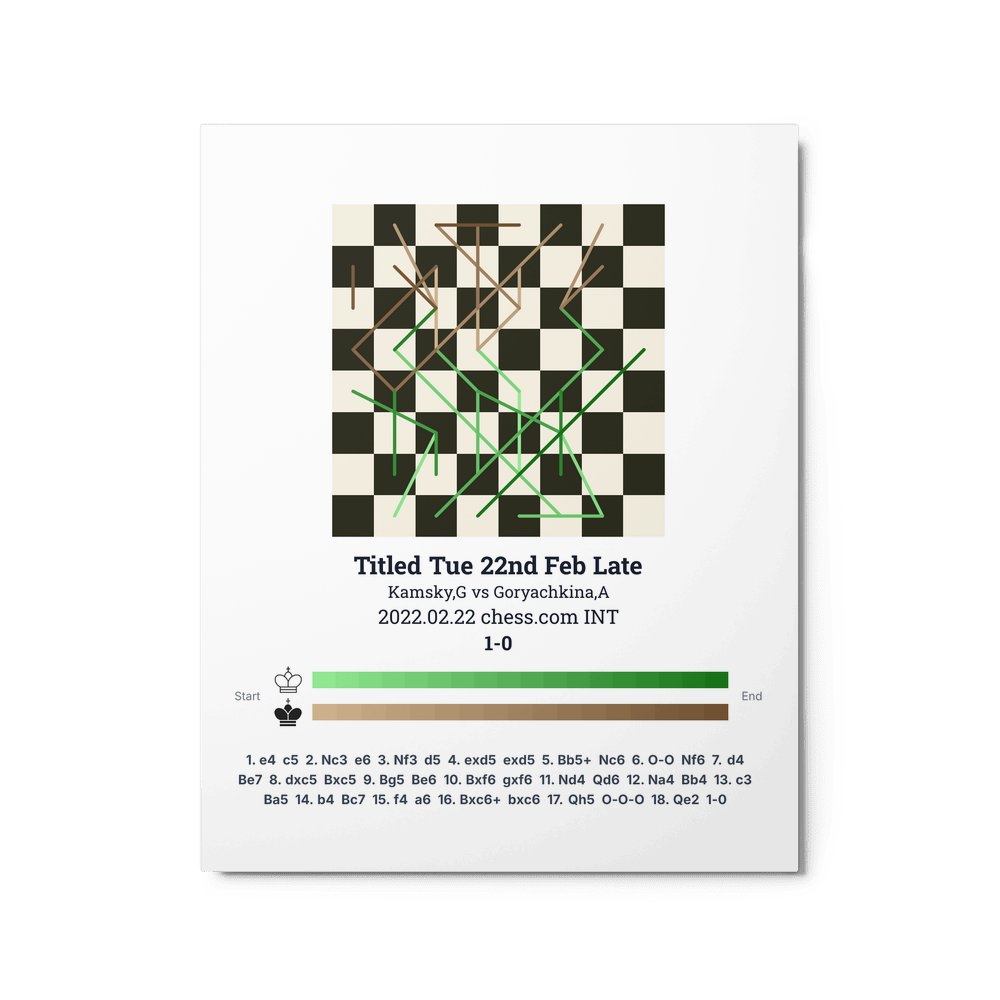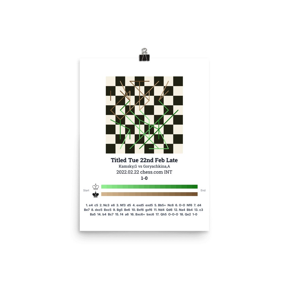 Museum-quality poster on thick, durable matte paper. A sharp, clean look for any chess visualisation.