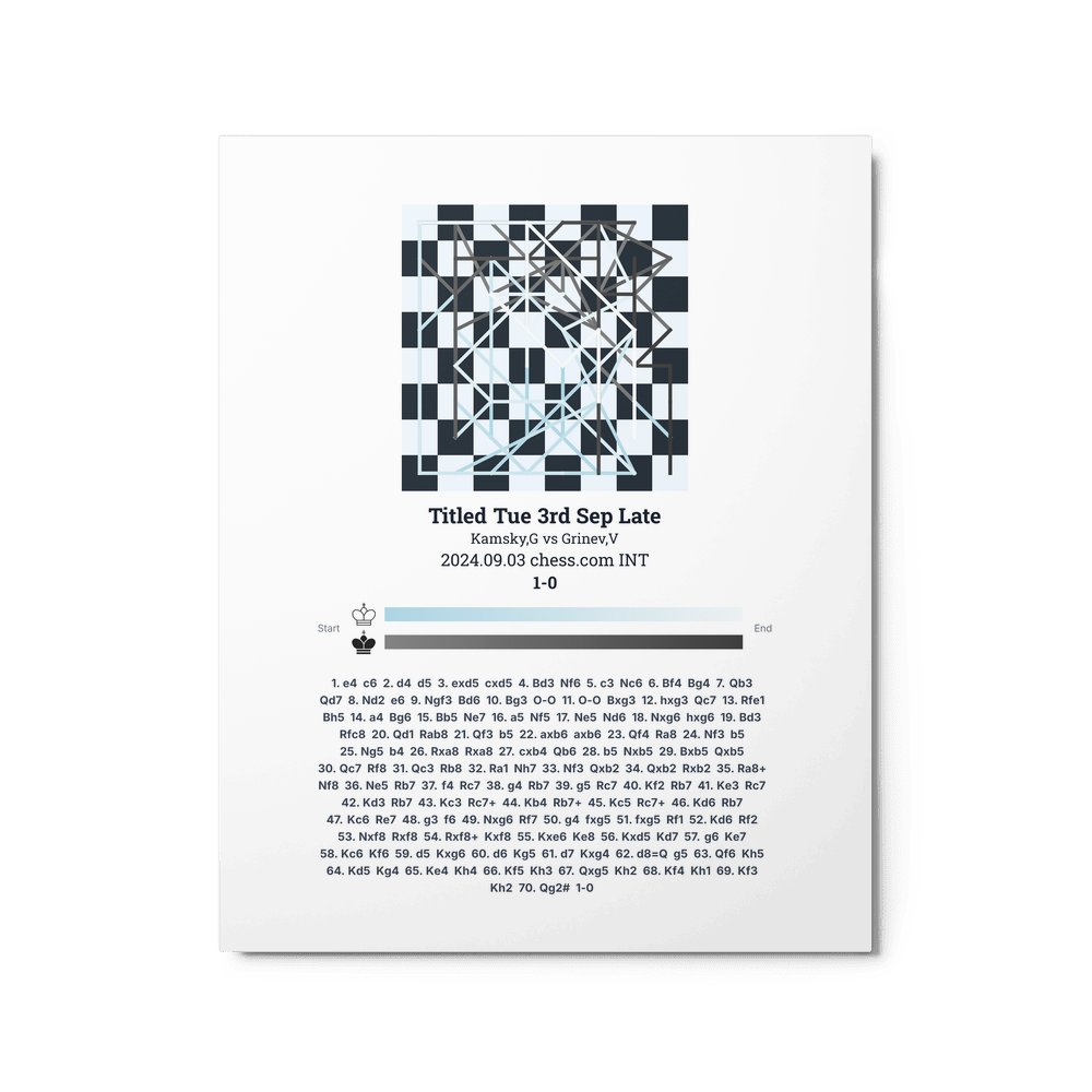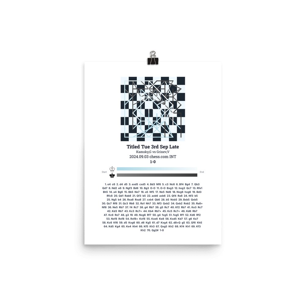 Museum-quality poster on thick, durable matte paper. A sharp, clean look for any chess visualisation.