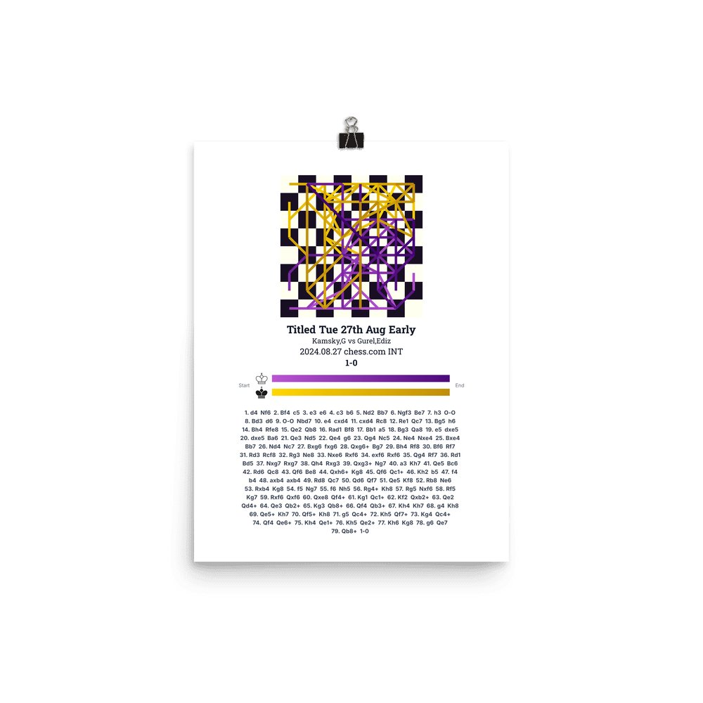 Museum-quality poster on thick, durable matte paper. A sharp, clean look for any chess visualisation.