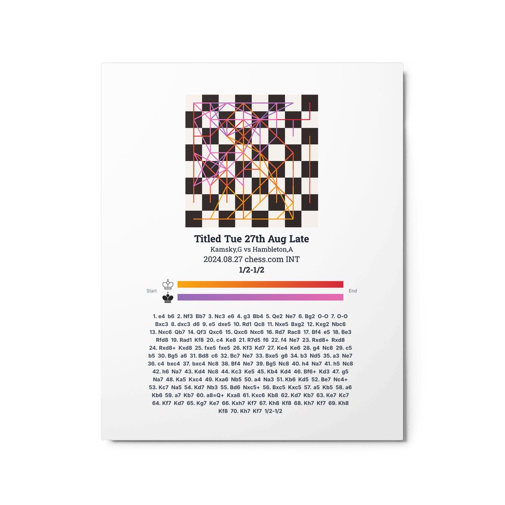 Museum-quality poster on thick, durable matte paper. A sharp, clean look for any chess visualisation.