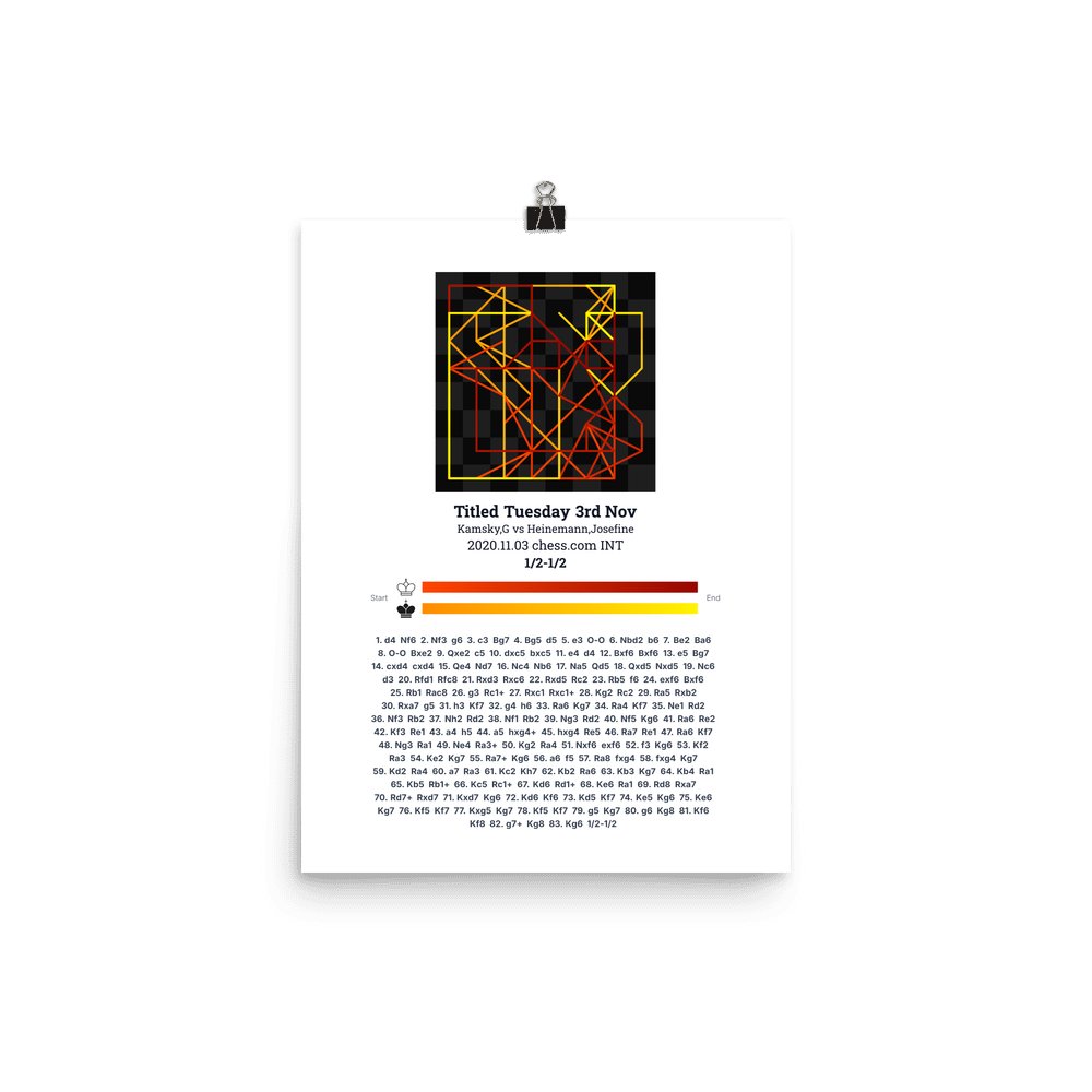 Museum-quality poster on thick, durable matte paper. A sharp, clean look for any chess visualisation.
