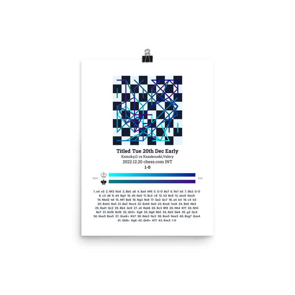 Museum-quality poster on thick, durable matte paper. A sharp, clean look for any chess visualisation.