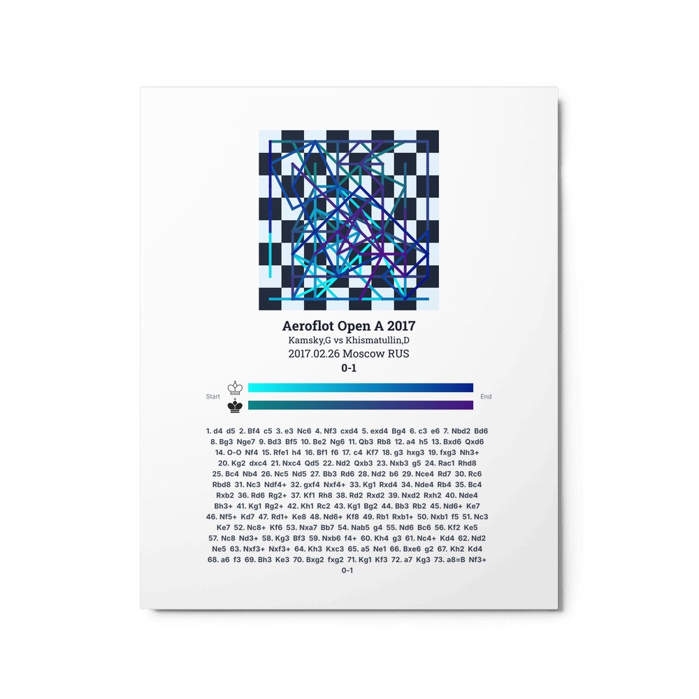 Museum-quality poster on thick, durable matte paper. A sharp, clean look for any chess visualisation.