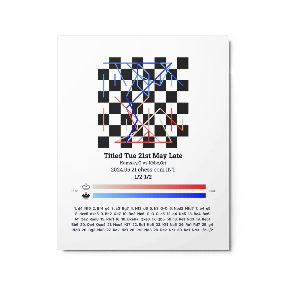 Museum-quality poster on thick, durable matte paper. A sharp, clean look for any chess visualisation.