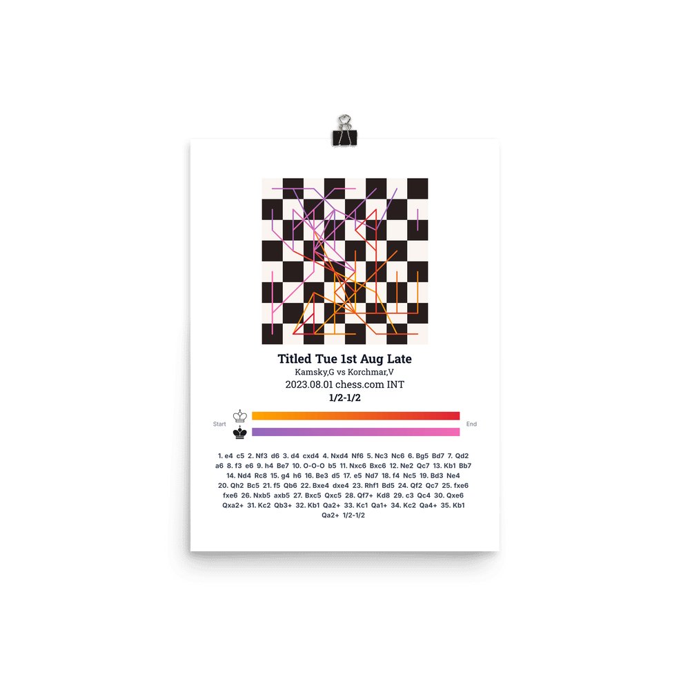 Museum-quality poster on thick, durable matte paper. A sharp, clean look for any chess visualisation.