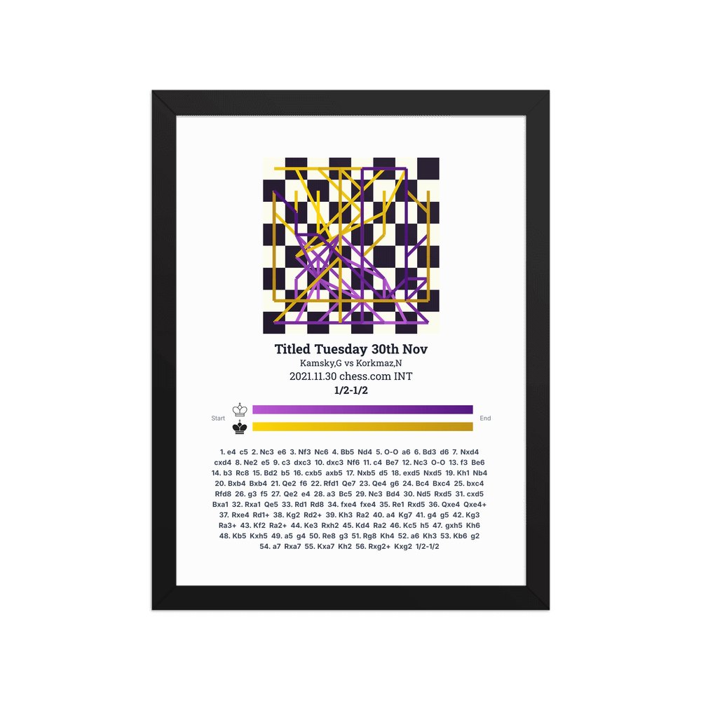 Museum-quality poster on thick, durable matte paper. A sharp, clean look for any chess visualisation.