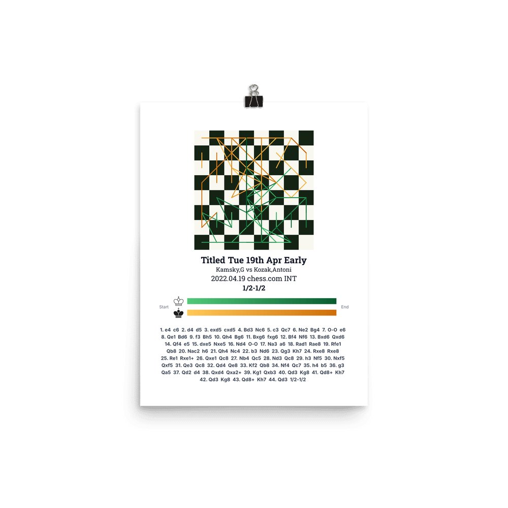 Museum-quality poster on thick, durable matte paper. A sharp, clean look for any chess visualisation.