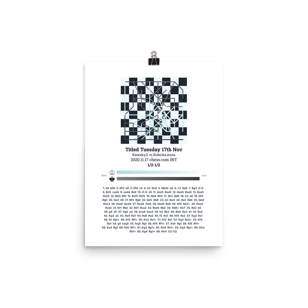 Museum-quality poster on thick, durable matte paper. A sharp, clean look for any chess visualisation.
