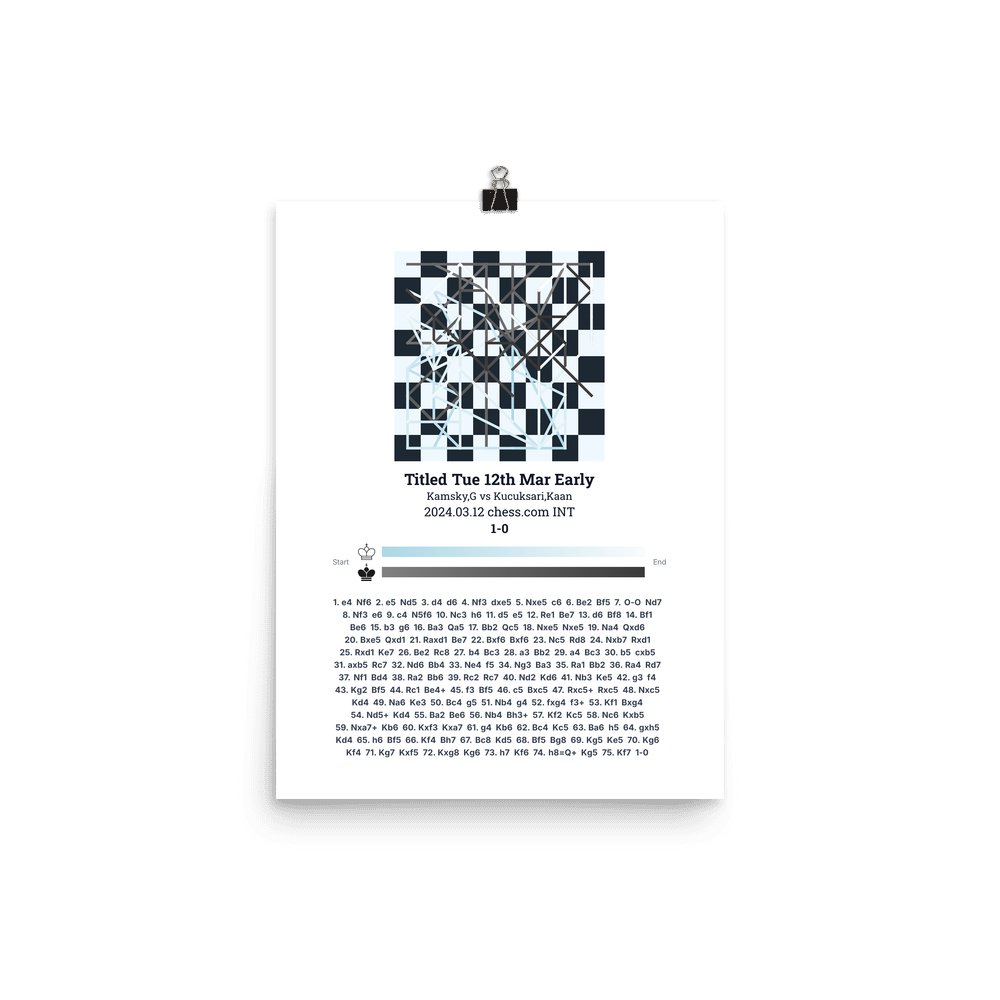 Museum-quality poster on thick, durable matte paper. A sharp, clean look for any chess visualisation.