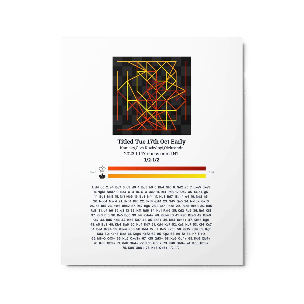 Museum-quality poster on thick, durable matte paper. A sharp, clean look for any chess visualisation.