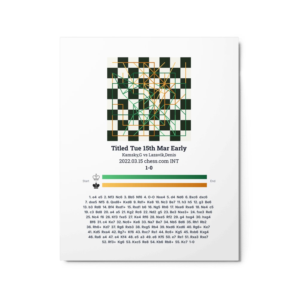 Museum-quality poster on thick, durable matte paper. A sharp, clean look for any chess visualisation.