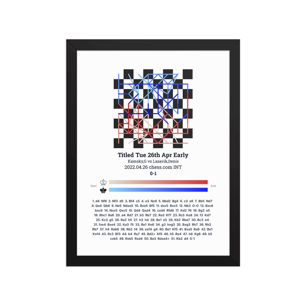 Museum-quality poster on thick, durable matte paper. A sharp, clean look for any chess visualisation.