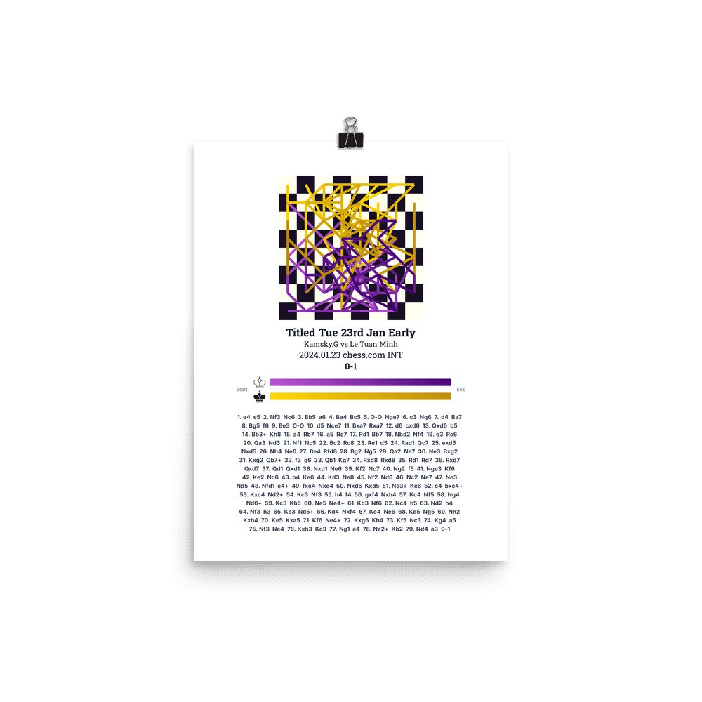 Museum-quality poster on thick, durable matte paper. A sharp, clean look for any chess visualisation.