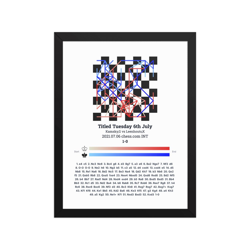 Museum-quality poster on thick, durable matte paper. A sharp, clean look for any chess visualisation.