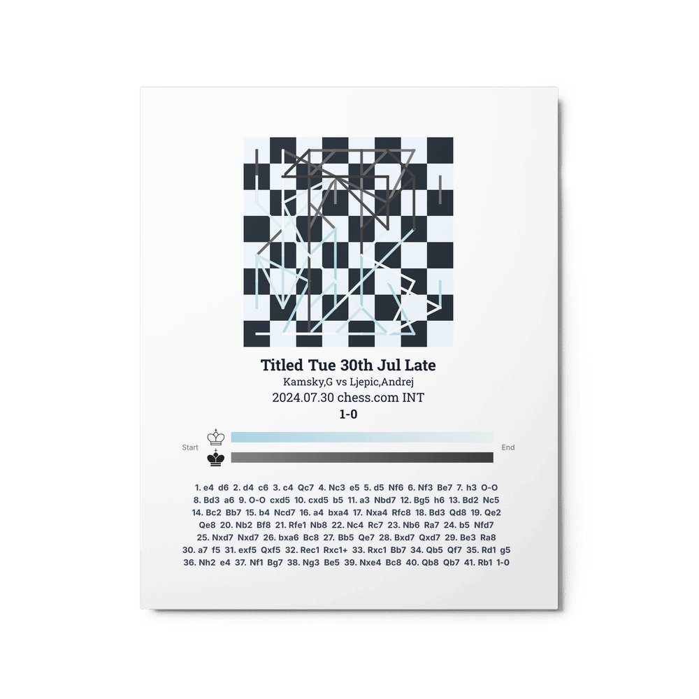Museum-quality poster on thick, durable matte paper. A sharp, clean look for any chess visualisation.