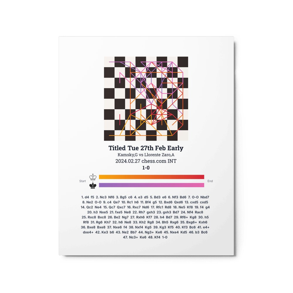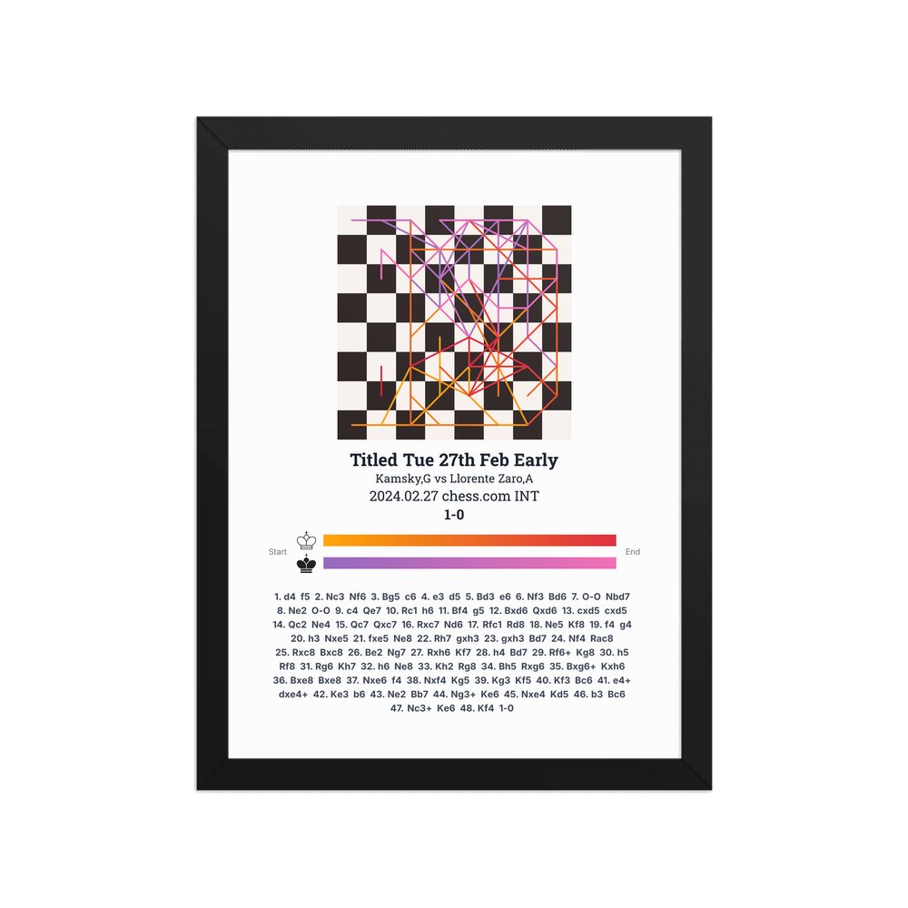 Museum-quality poster on thick, durable matte paper. A sharp, clean look for any chess visualisation.