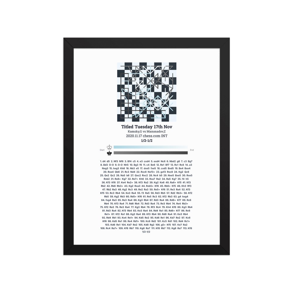 Museum-quality poster on thick, durable matte paper. A sharp, clean look for any chess visualisation.