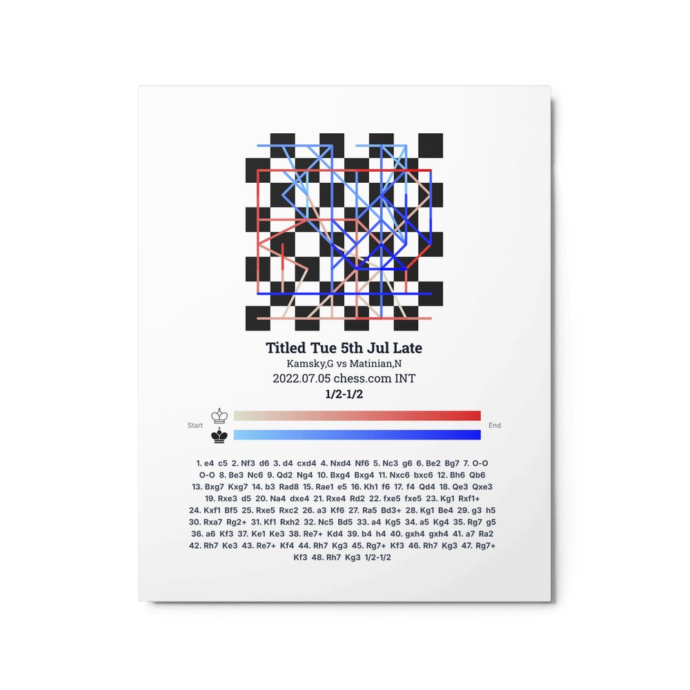 Museum-quality poster on thick, durable matte paper. A sharp, clean look for any chess visualisation.