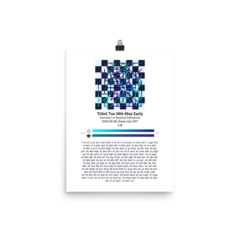 Museum-quality poster on thick, durable matte paper. A sharp, clean look for any chess visualisation.