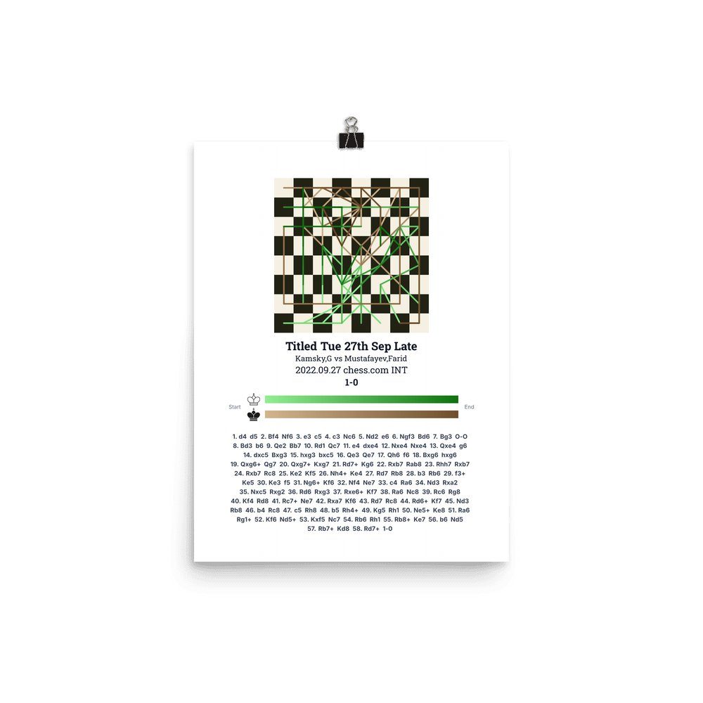 Museum-quality poster on thick, durable matte paper. A sharp, clean look for any chess visualisation.