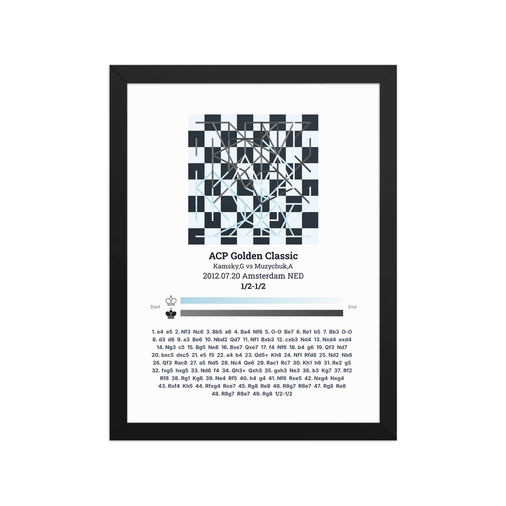 Museum-quality poster on thick, durable matte paper. A sharp, clean look for any chess visualisation.