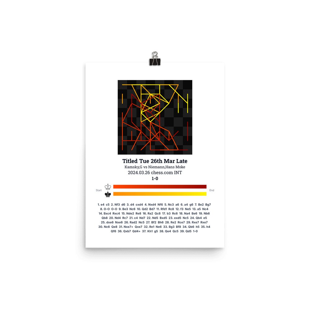 Museum-quality poster on thick, durable matte paper. A sharp, clean look for any chess visualisation.