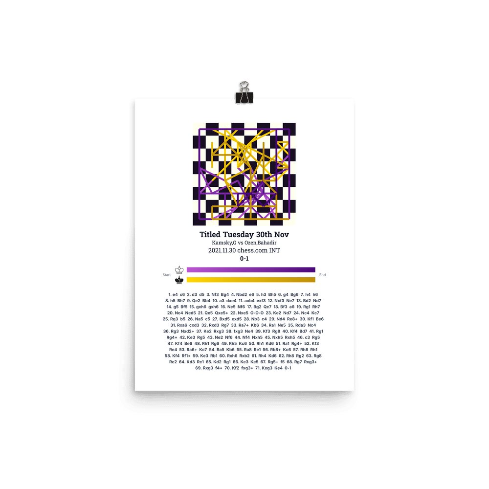 Museum-quality poster on thick, durable matte paper. A sharp, clean look for any chess visualisation.