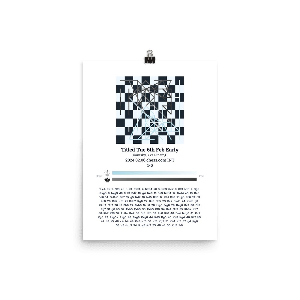 Museum-quality poster on thick, durable matte paper. A sharp, clean look for any chess visualisation.