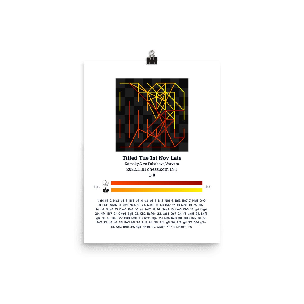 Museum-quality poster on thick, durable matte paper. A sharp, clean look for any chess visualisation.