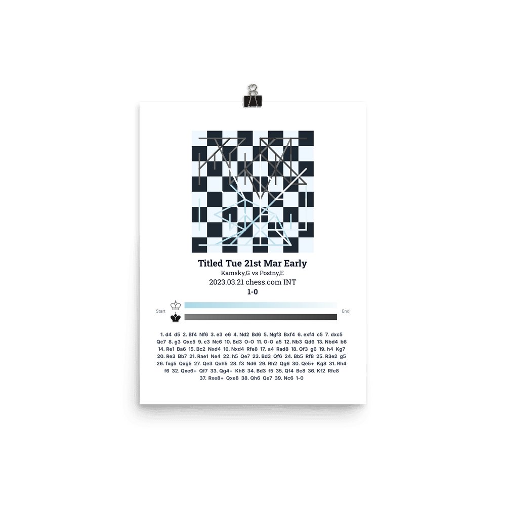 Museum-quality poster on thick, durable matte paper. A sharp, clean look for any chess visualisation.