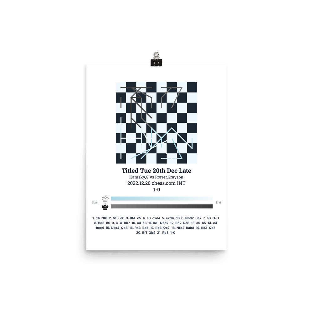 Museum-quality poster on thick, durable matte paper. A sharp, clean look for any chess visualisation.