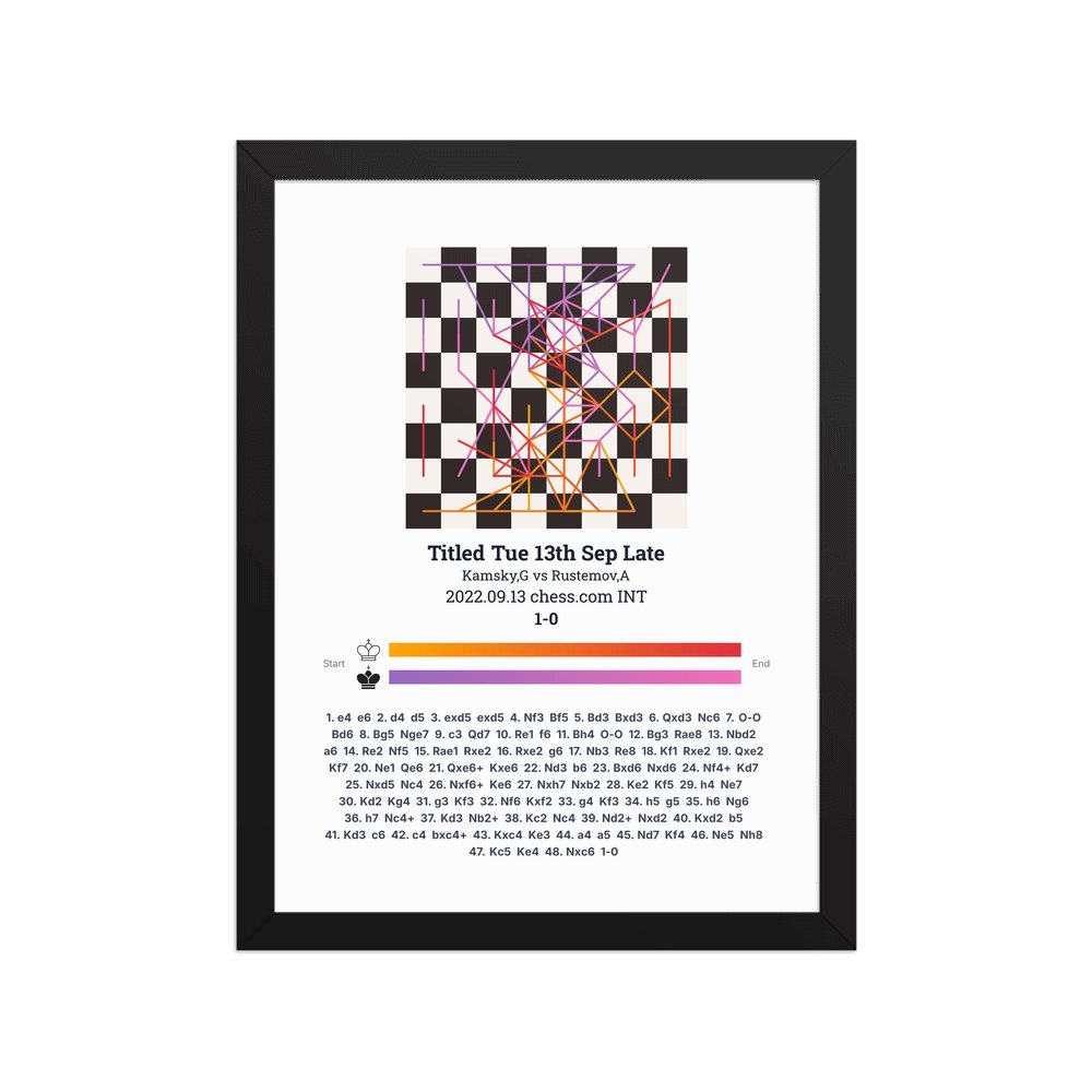Museum-quality poster on thick, durable matte paper. A sharp, clean look for any chess visualisation.