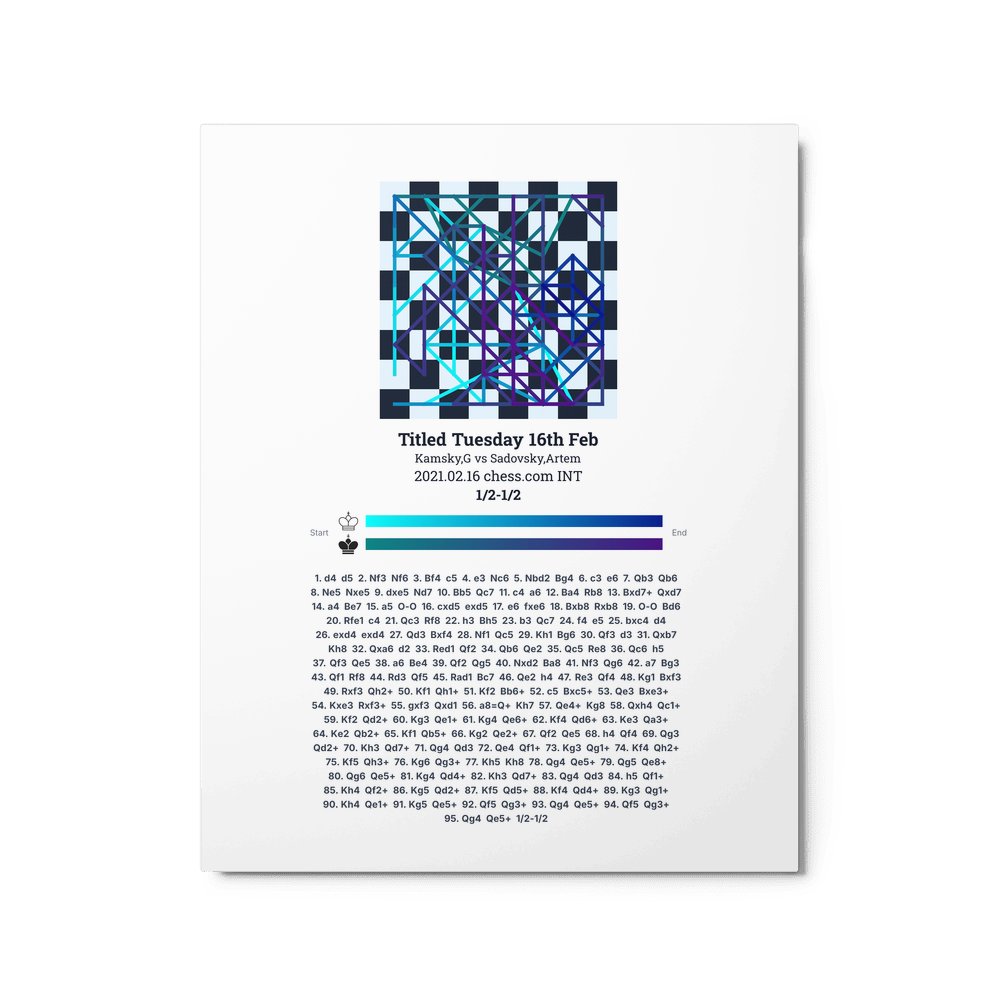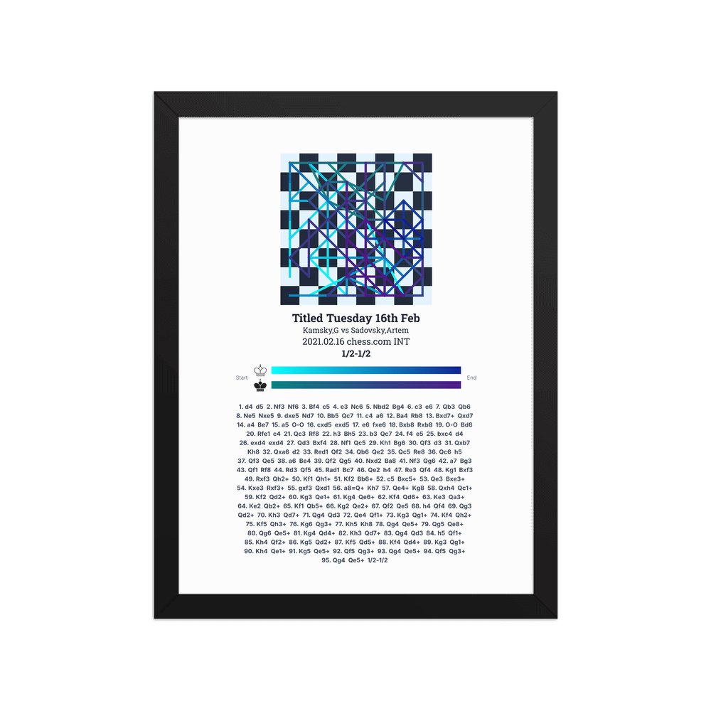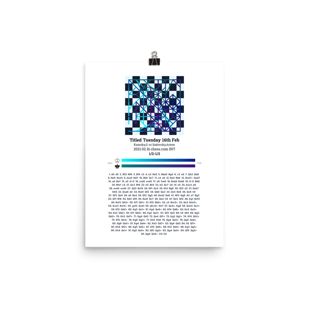 Museum-quality poster on thick, durable matte paper. A sharp, clean look for any chess visualisation.