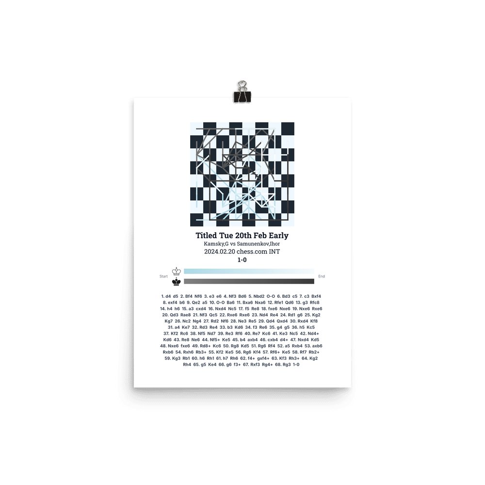 Museum-quality poster on thick, durable matte paper. A sharp, clean look for any chess visualisation.