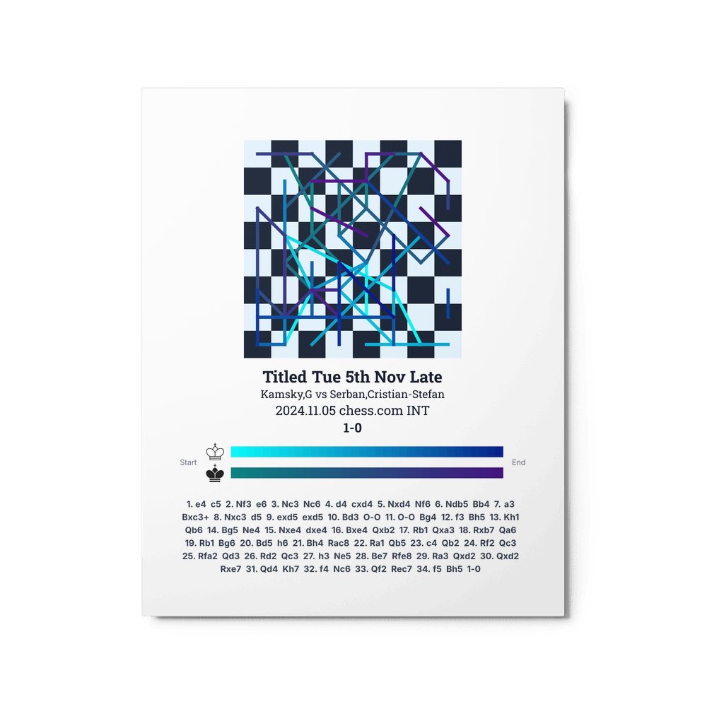 Museum-quality poster on thick, durable matte paper. A sharp, clean look for any chess visualisation.