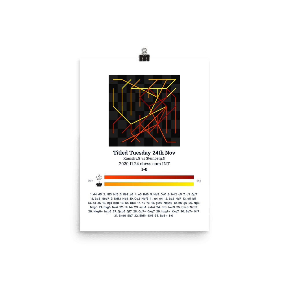 Museum-quality poster on thick, durable matte paper. A sharp, clean look for any chess visualisation.