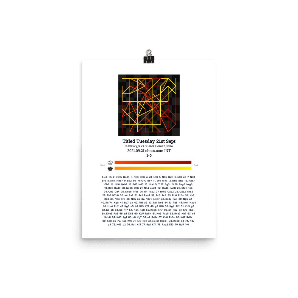 Museum-quality poster on thick, durable matte paper. A sharp, clean look for any chess visualisation.