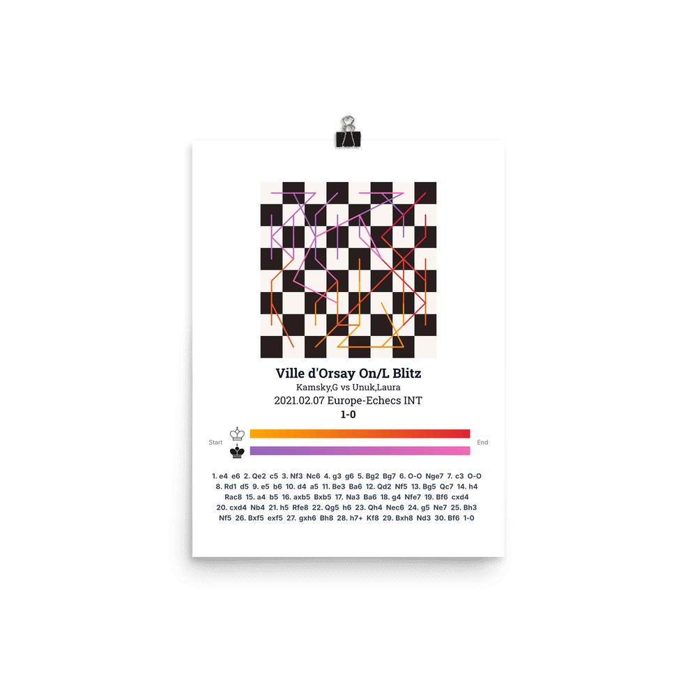 Museum-quality poster on thick, durable matte paper. A sharp, clean look for any chess visualisation.