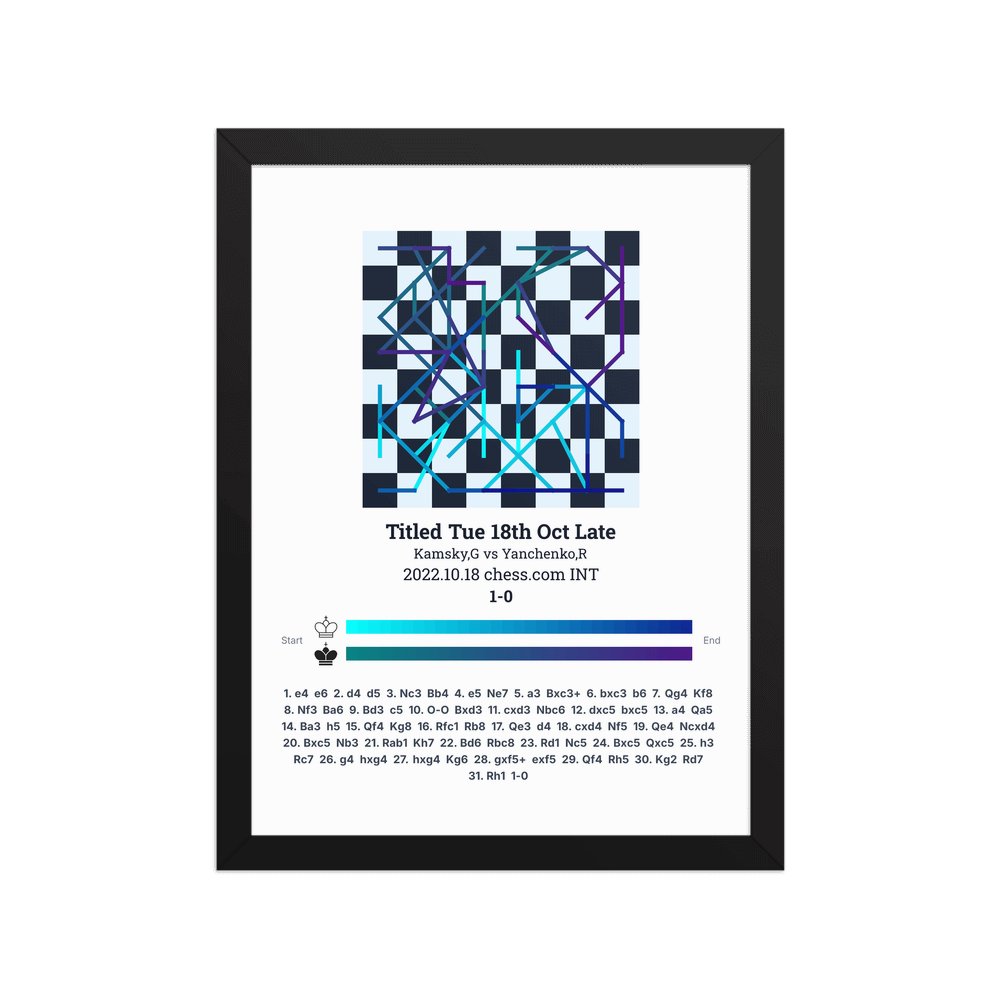 Museum-quality poster on thick, durable matte paper. A sharp, clean look for any chess visualisation.