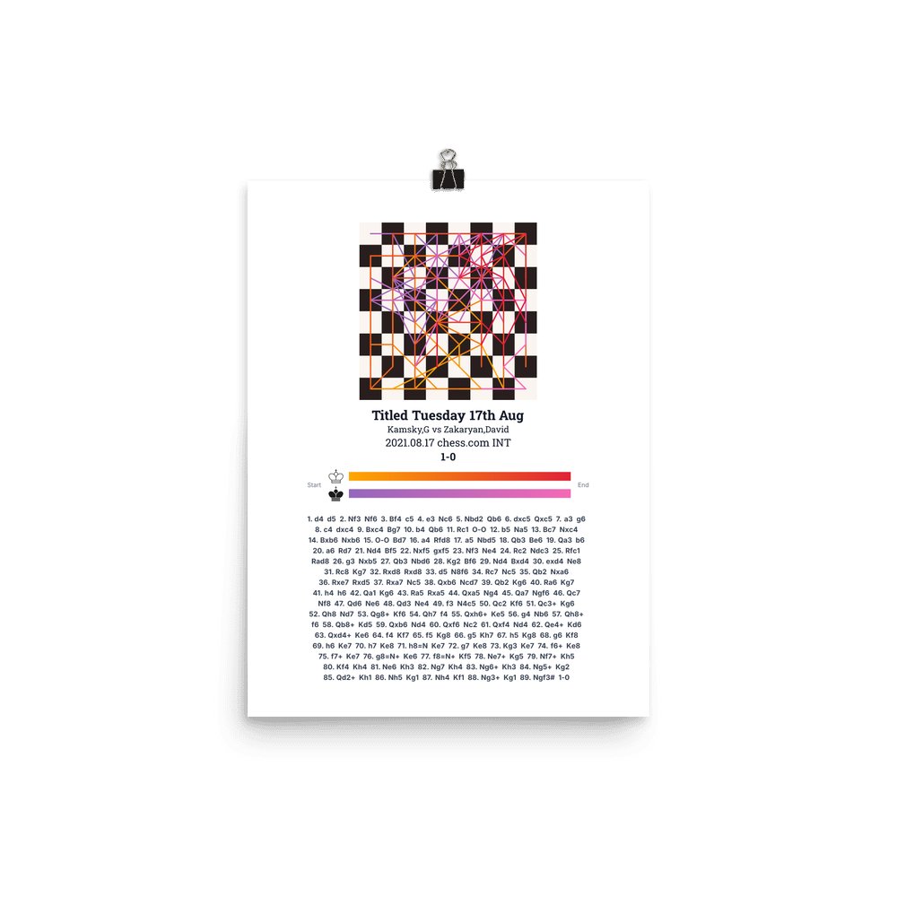 Museum-quality poster on thick, durable matte paper. A sharp, clean look for any chess visualisation.