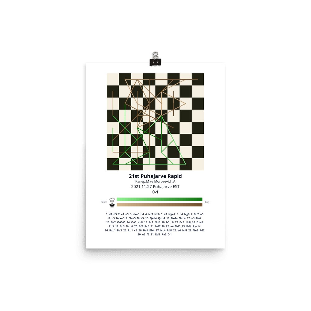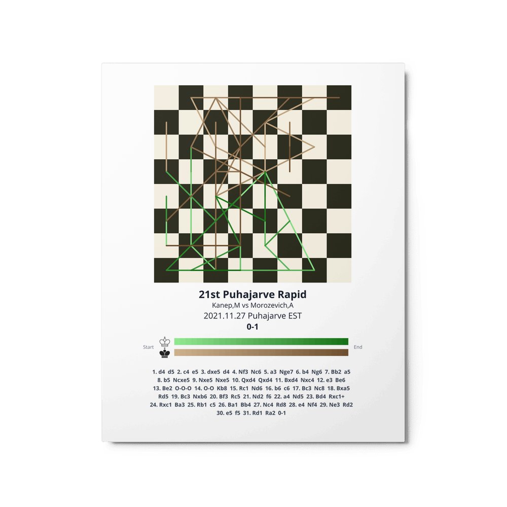 Museum-quality poster on thick, durable matte paper. A sharp, clean look for any chess visualisation.