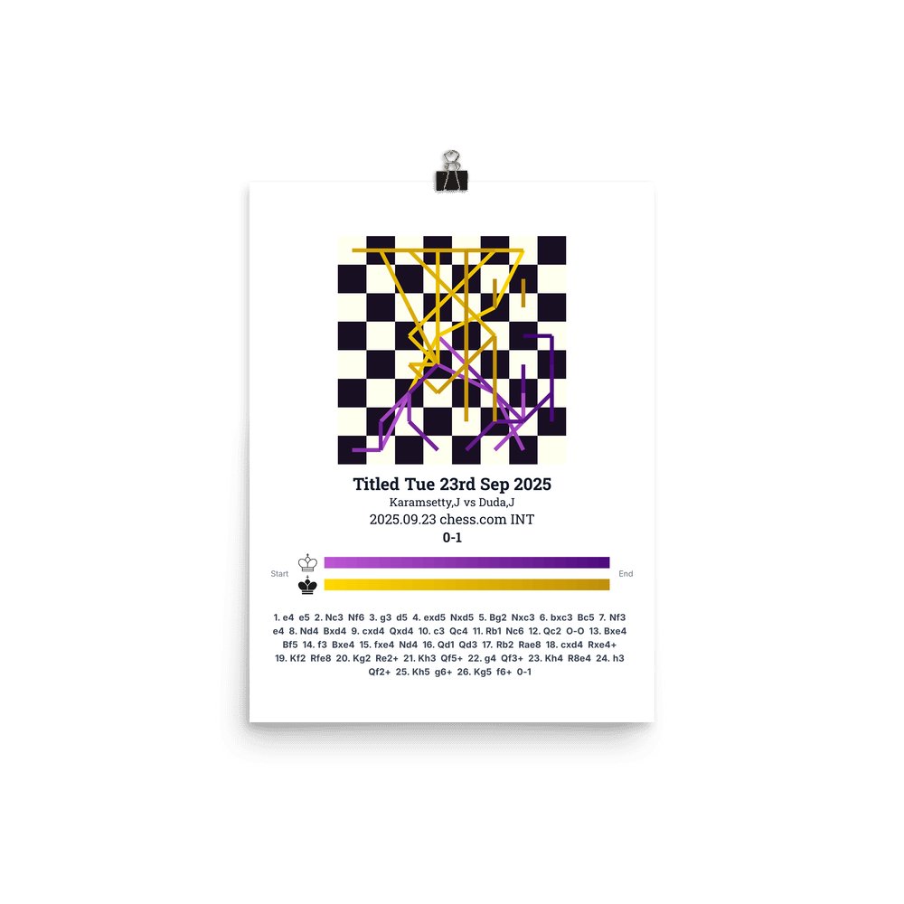 Museum-quality poster on thick, durable matte paper. A sharp, clean look for any chess visualisation.