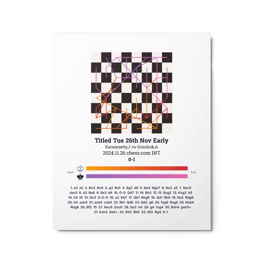 Museum-quality poster on thick, durable matte paper. A sharp, clean look for any chess visualisation.
