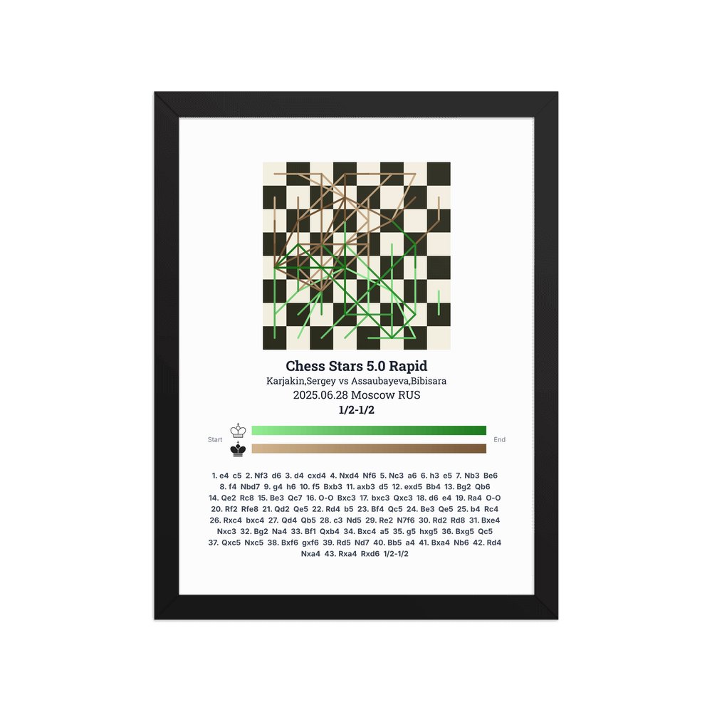 Museum-quality poster on thick, durable matte paper. A sharp, clean look for any chess visualisation.