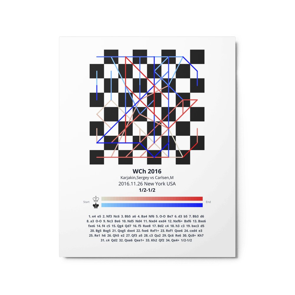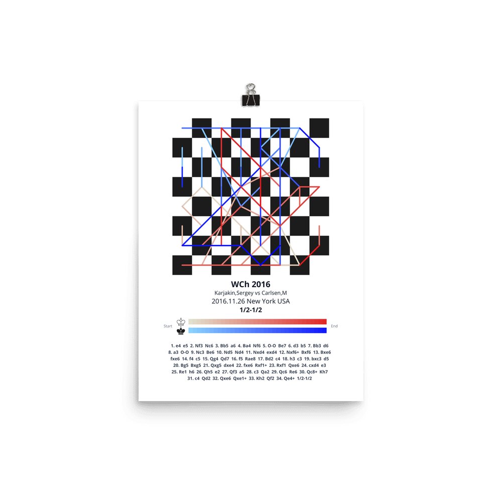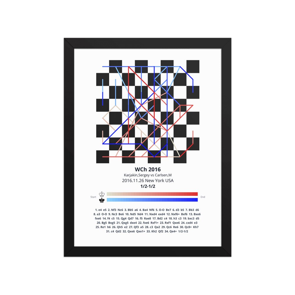 Museum-quality poster on thick, durable matte paper. A sharp, clean look for any chess visualisation.